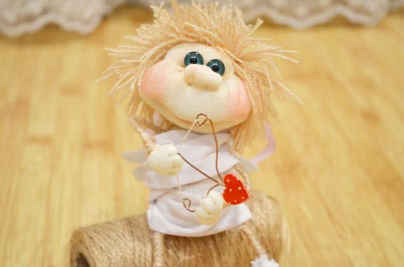 - После берем нить и формируем различные черты лица и части тела. На первый взгляд может показаться, что ничего проще нет, но на самом деле, необходимо немного приноровиться, прежде чем создавать собственных кукол, ведь поначалу будет сложно придать кукле именно ту эмоцию, которая необходима.