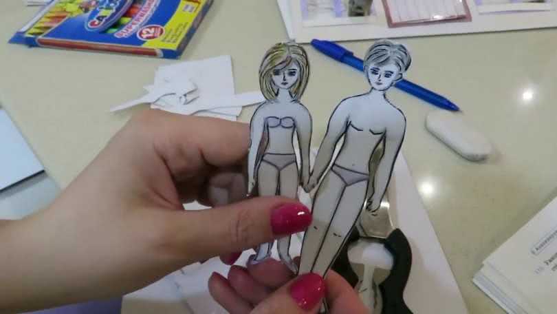 Для этого самостоятельно рисуют и вырезают из бумаги разные виды одежды. Пышная юбка, выполненная из 8 кругов цветной бумаги одинакового диаметра, которые 2 раза складываются пополам и склеиваются между собой, позволяет бумажной принцессе стоять. Часто одежду вырезали из готовых заготовок. Информацию о том, как сделать куклу из бумаги можно найти в интернете.