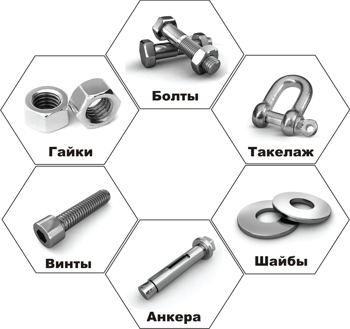К метрическим изделиям относятся болты, гайки, винты, метрическая шпилька клепальная гайка.