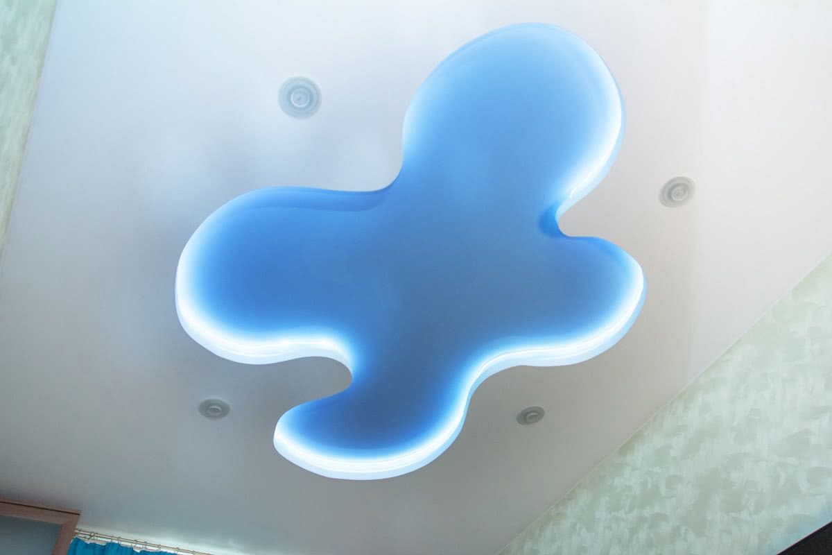 - Благодаря скрытой подсветке потолок напоминает амебу, парящую в воздухе.