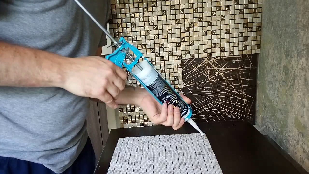 Данный способ крепежа подойдет при условии наличия идеально ровного основания. Если прежний фартук был выполнен из плитки и элементы старого покрытия не отваливаются, можно приклеить новый материал прямо на него.