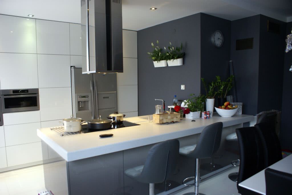 Все чаще в кухонных конструкциях используются горелки, монтируемые на столешницы вместо газовых плит. Эта обработка также делает кухню менее “кухонной”, и более модной в наше время. Кроме того, стоит обратить внимание на вытяжки, используемые во многих современных проектах. Их формы не всегда связаны с их функцией. Например, они похожи на люстры.