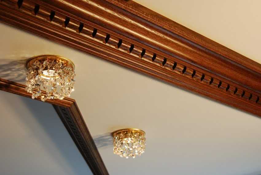 Деревянный молдинг стоит категорией выше искусственных изделий, поэтому и стоит значительно дороже. Большой вес требует укрепления планки саморезами при монтаже.