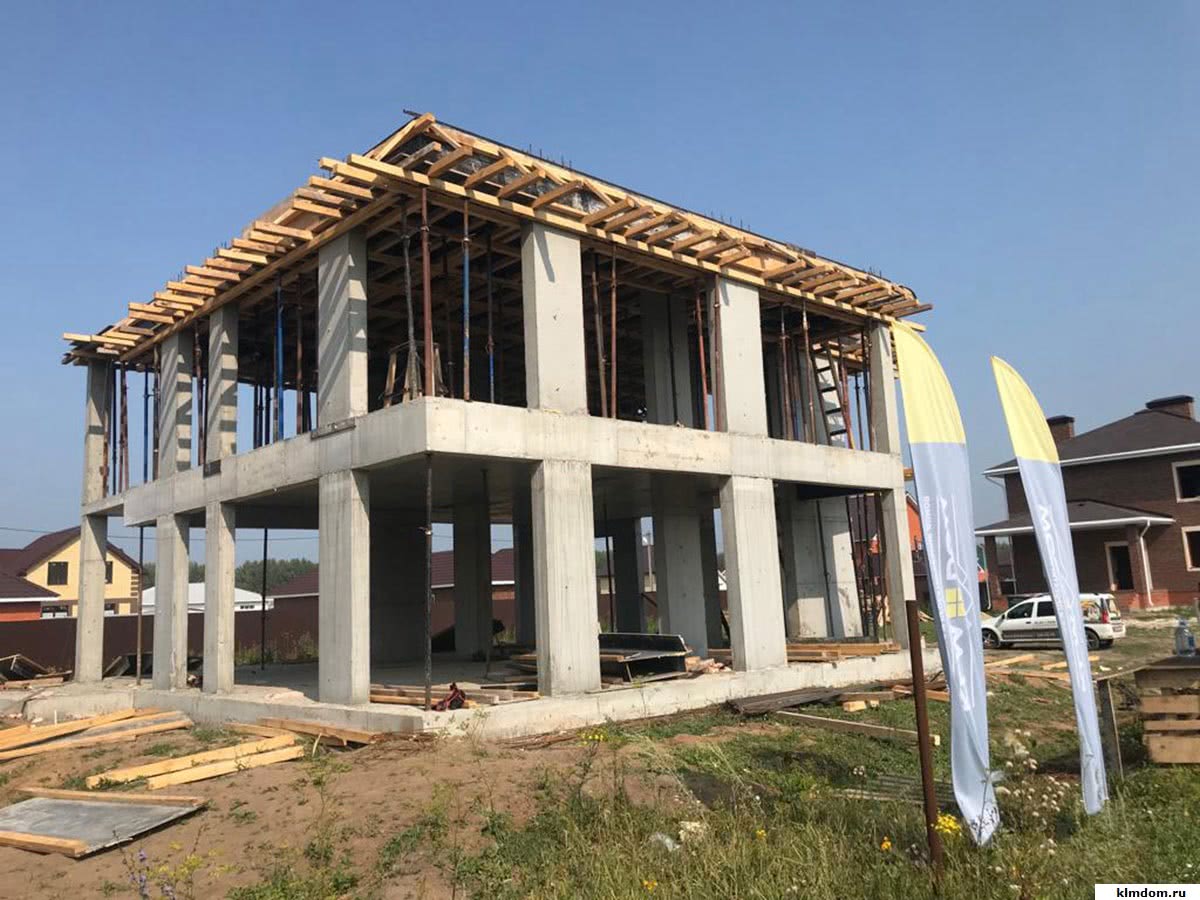 Полученный после бетонирования каркас строения, состоящий из железобетонных колонн и бетонного перекрытия, не создает ощущение громоздкости. Здание воспринимается как легкая пространственная конструкция. Расстояние между несущими колоннами составляет до 10 м. Готовый железобетонный каркас подлежит теплоизоляции и декоративной облицовке.