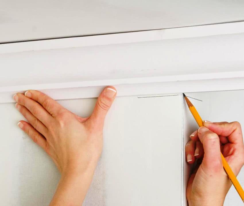 Перед тем как клеить багет, нужно отметить это место карандашом