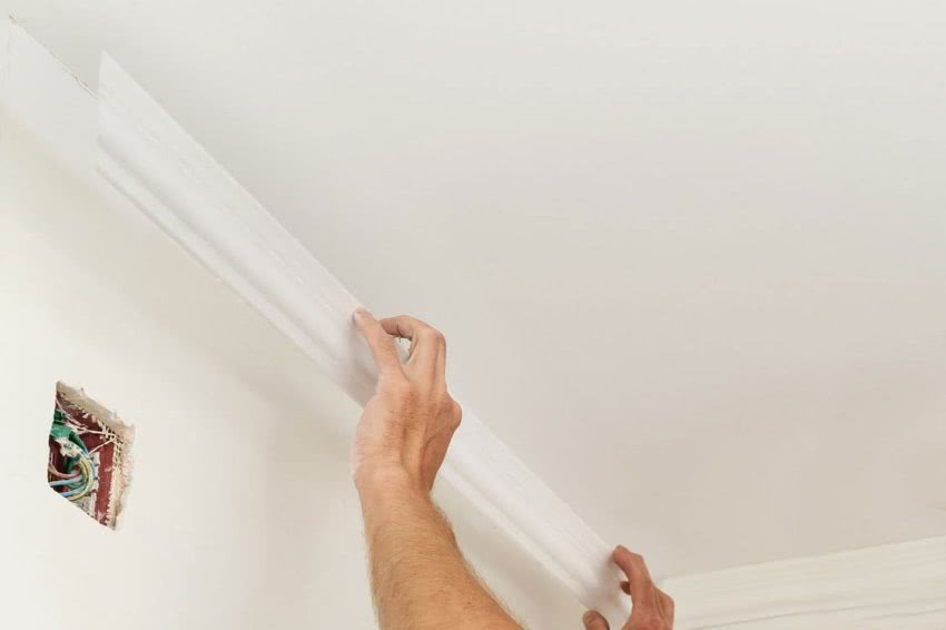 Перед тем как клеить багеты на натяжной потолок, следует убедиться, что куплен подходящий клей. На этом расходном материале экономить не стоит, особенно если багет сделан из пластика.