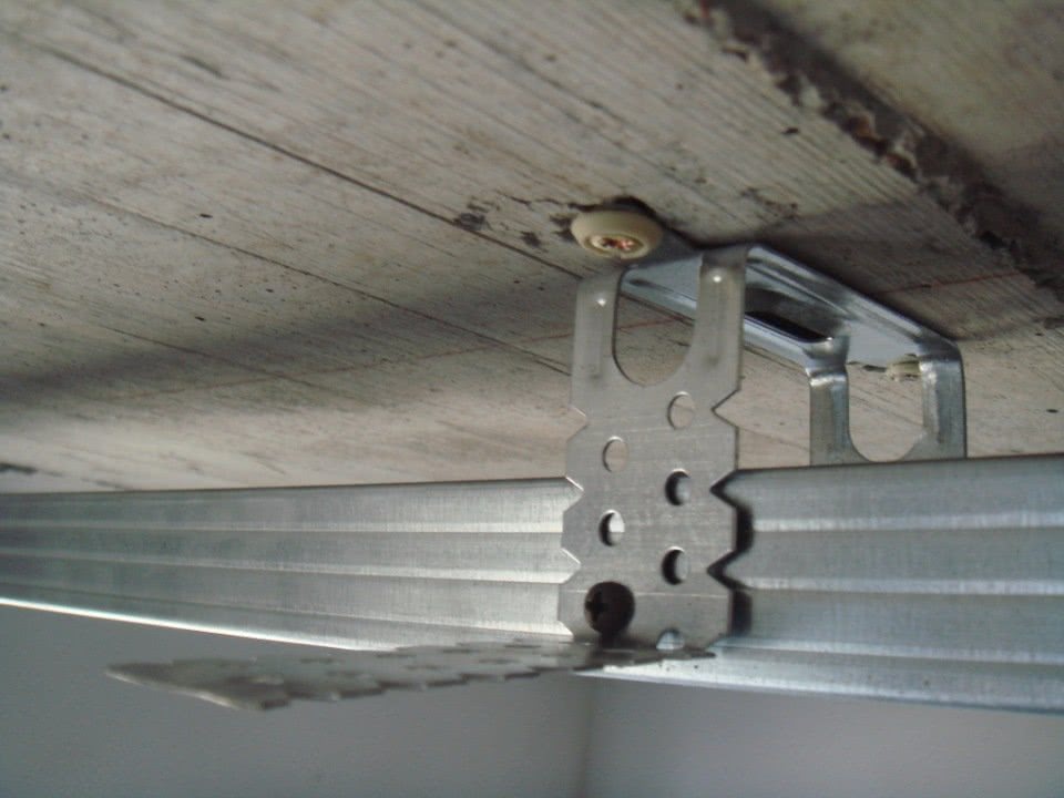 При использовании для каркаса металлического профиля по периметру крепят направляющий профиль, на плоскости – стоечный. Крепление профиля к стене осуществляют на специальные подвесы.