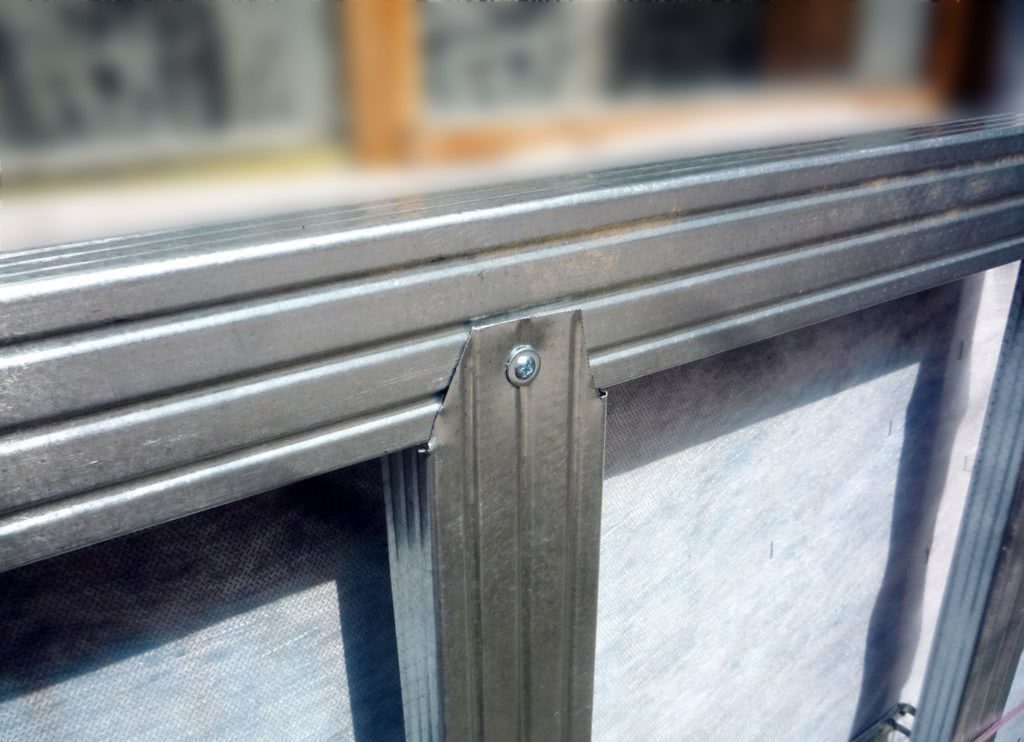 - Соединяются направляющие и стоечные профиля с помощью саморезов с пресс-шайбой либо заклепочника.