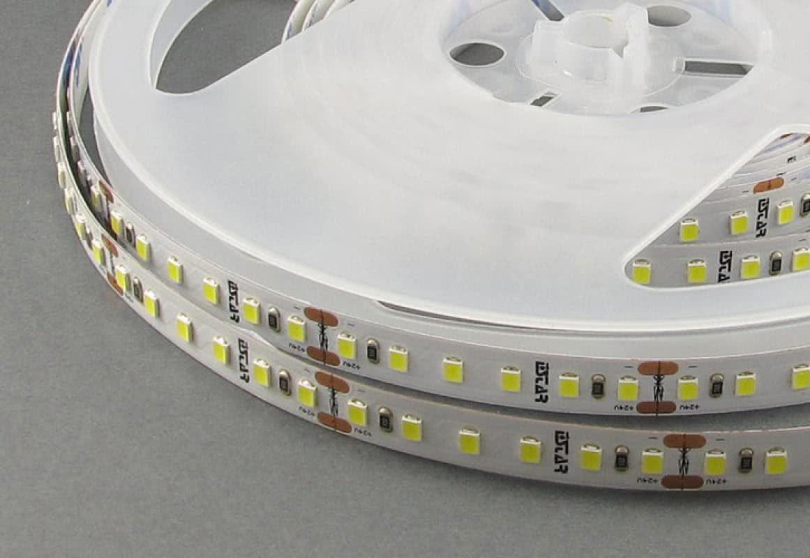 Светодиодная лента – это гибкий длинный источник света, собранный на основе гибкой тонкой печатной платы, с одной стороны которой с определенным шагом размещены светодиоды и вспомогательные радиодетали.