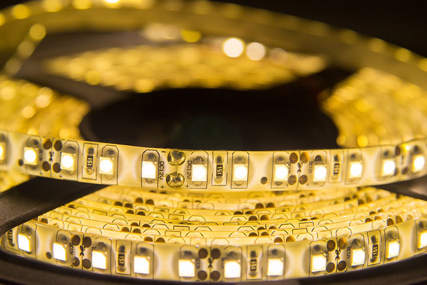 Светодиодная лента – это тонкая и гибкая плата, где на равном друг от друга расстоянии расположены светодиоды.