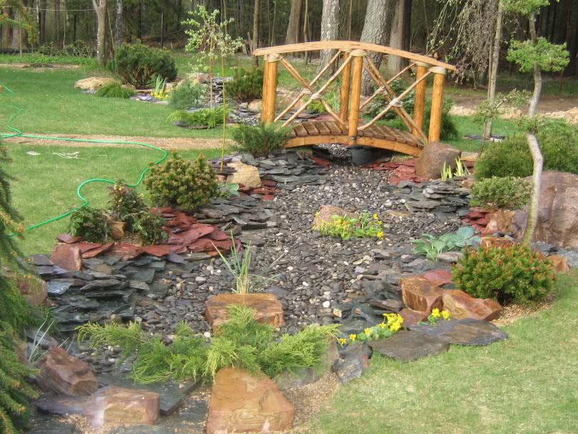 - Сухое русло речки или даже ручейка, которое можно соорудить и самостоятельно, еще одно отличное решение.