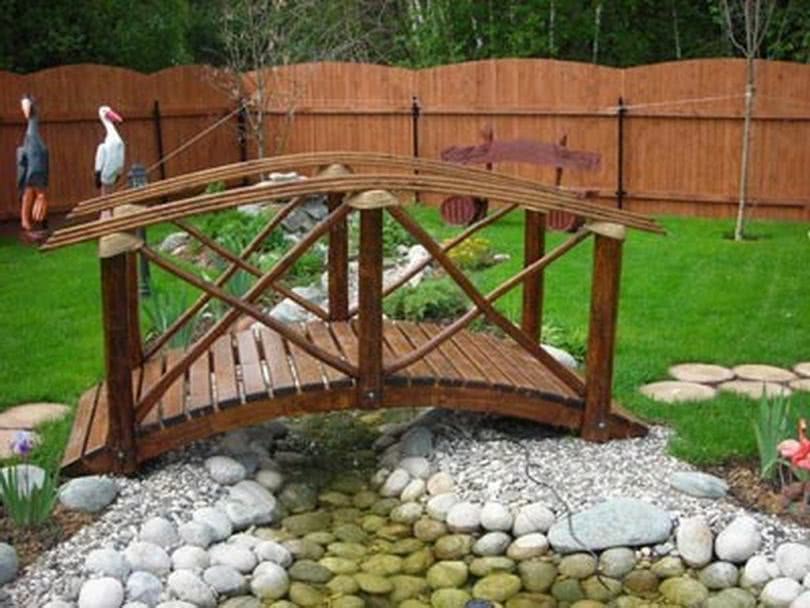 Главное внимание всегда приковано к форме моста. Если планируется создавать элемент самостоятельно, то нужно четко оценивать свои возможности и выбирать такой тип мостика, который действительно можно будет построить своими руками