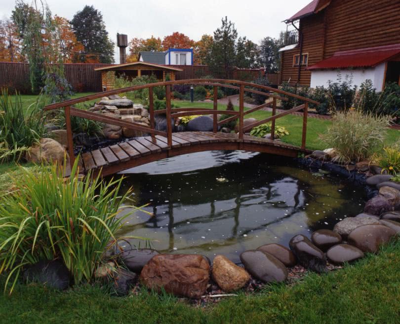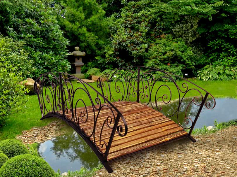 Конечно же в первую очередь функциональность любого моста – простая переправа через любой водоем. Однако, далеко не на каждом приусадебном участке может иметься речка, пруд, или даже ручей, как естественного, так и искусственного происхождения. Потому зачастую садовые мосты несут именно декоративную нагрузку, не более. Тем не менее, мостик обязательно должен быть перекинут через что-либо, а вот через что конкретно, это уже вопрос интересный и достаточно сложный.