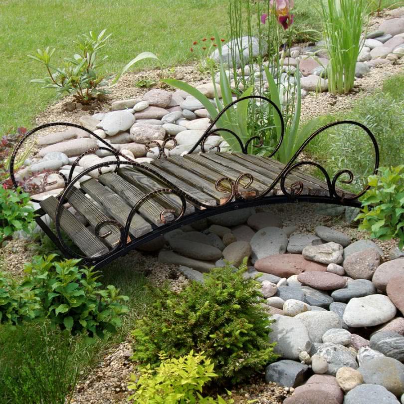 При наличии навыков и сварочного аппарата можно попробовать сделать по фото такой садовый мостик своими руками, что позволит хорошенько сэкономить.