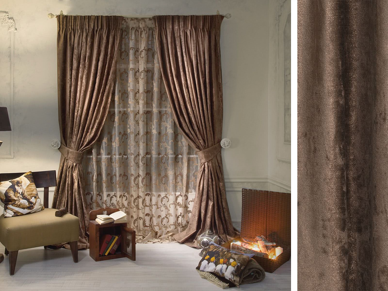 - Портьеры. Обеспечивают хорошее затемнение: тяжелый плотный материал, протяженность от потолка до пола – массивность во всем.