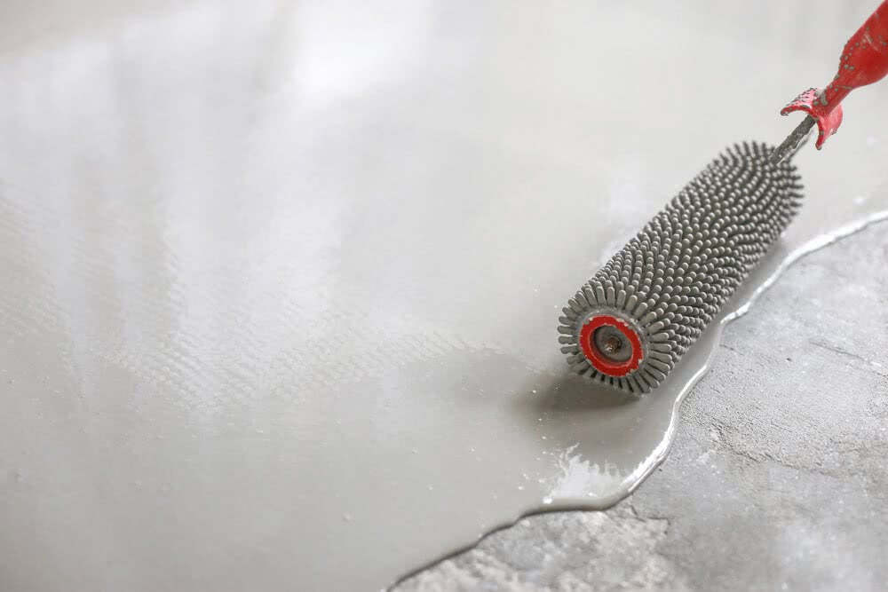 - Когда смесь распределена по ней проходятся игольчатым валиком, чтобы выгнать воздух и не допустить образования пузырей. Они плохо сказываются на прочности покрытия.