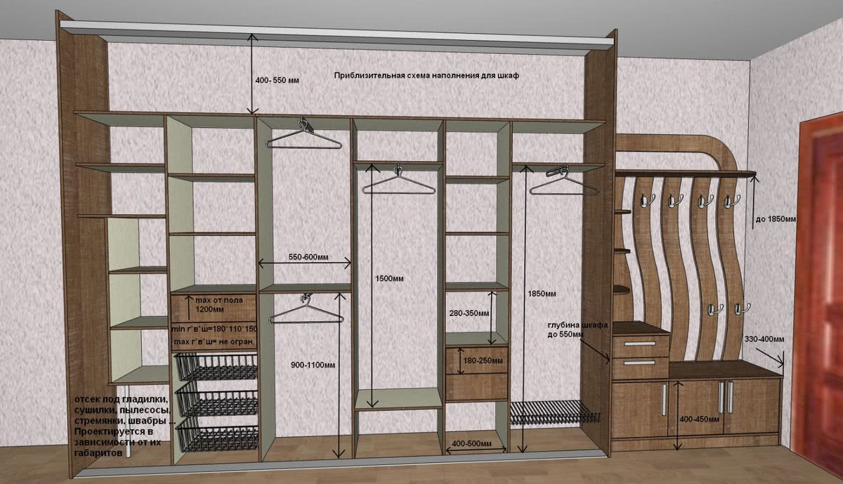 - размеры и планировка шкафа;