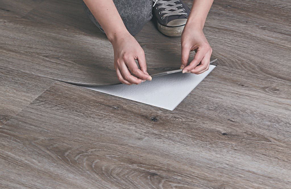 Интересный вариант – плитка ПВХ для пола самоклеющаяся, ее применение значительно облегчает процесс укладки. Понятно, что для монтажа не нужен клей — просто отклеивается защитная пленка.