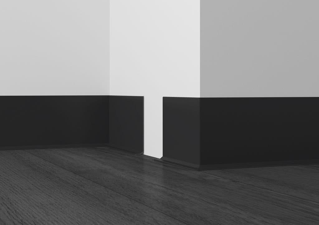 Широкий черный мягкий плинтус для пола фото