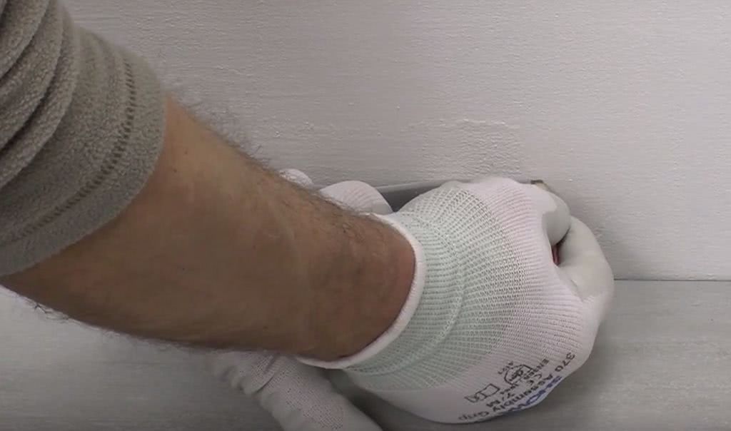 Плинтус с финишным покрытием нужно устанавливать на монтажную планку. Этот способ применим и к изделиям под покраску, если стены ровные.