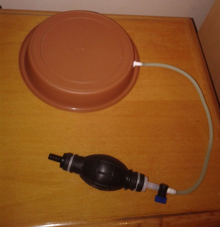 Вначале делают самую ответственную часть – обратный клапан. Используют пластиковую пробку, в которой сверлят несколько дыр по кругу Ø 5 мм и в центре одно под болт. Им закрепляют установленный изнутри диск из резины. Не допускают его трения о стенки, но он должен закрыть все отверстия в заглушке. Если нет желания возиться с самодельной конструкцией, покупают промышленное изделие и устанавливают.