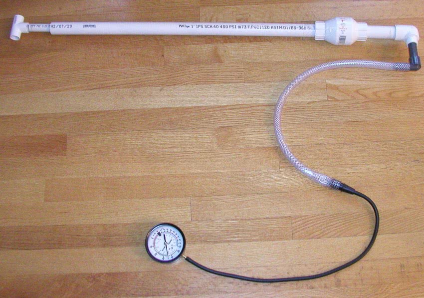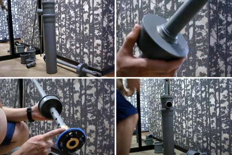 Готовят гильзу, обрезав изделие ПВХ до необходимой длины, а можно сразу купить 1 м – такие продаются. В раструб вставляют клапан, вкручивают сквозь стенки 2 самореза для надежности крепления. Со второго конца устанавливают заглушку с просверленным по центру отверстием Ø 25 мм под трубу 24 мм, которая используется, как шток.