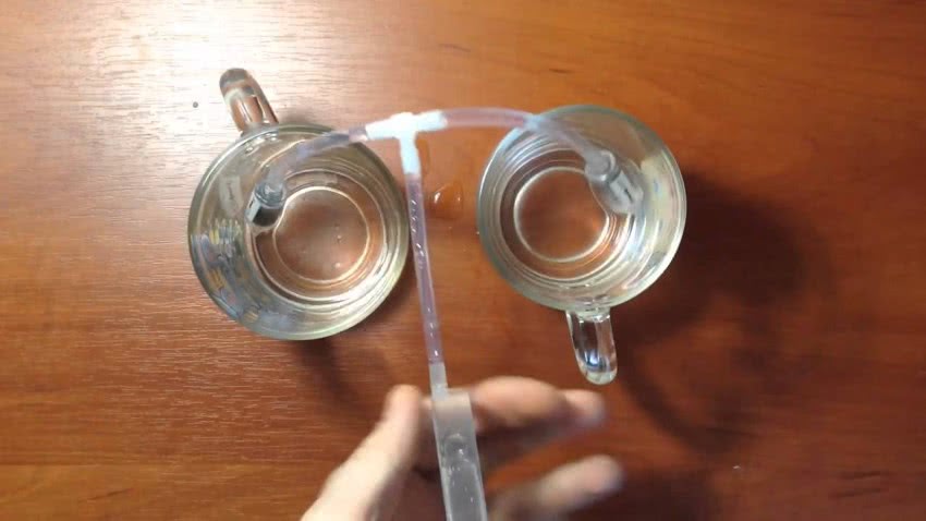 Собирают изделие: штангу с поршнем вставляют в гильзу, через верх надевают опору скольжения (заглушку с отверстием). С верхнего конца устанавливают тройник, в него по бокам 2 трубки. К одной присоединяют угольник для отлива, вторую закрывают наглухо. При перемещении механизма вода попадает внутрь штока и затем выливается наружу.