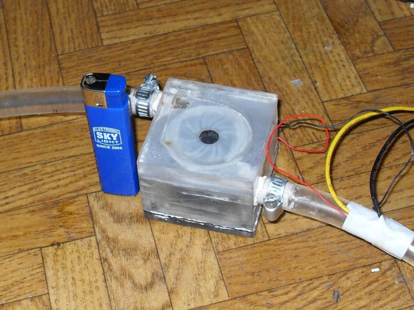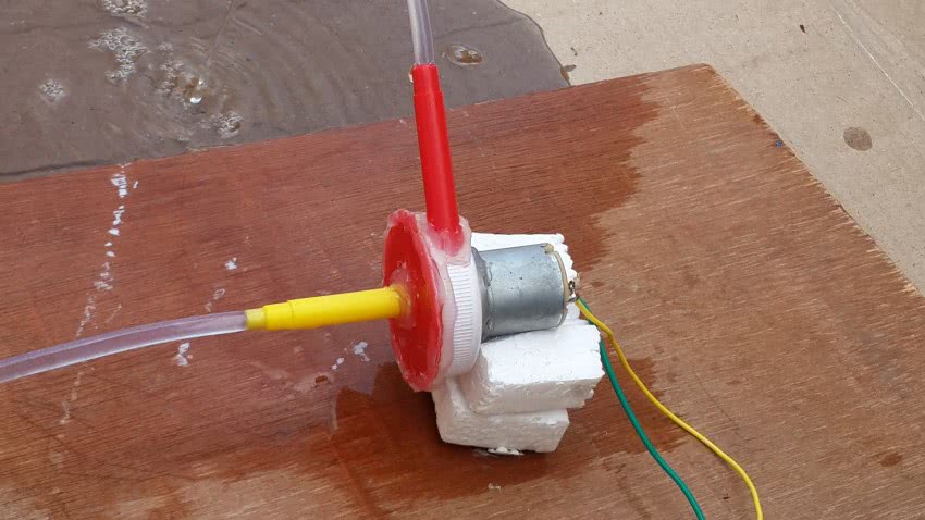 Приводом установки служит частично утопленное колесо с лопастями, вращаемое речкой или ручьем. На его боковой поверхности укладывается в виде спирали пластиковая труба диаметром от 50 до 75 мм. Для ее фиксации проще всего использовать пластиковые хомуты.