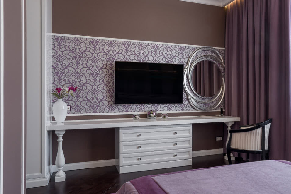 Полка – это превосходный вариант для помещения небольших размеров. Ее можно прикрепить к стене специальными креплениями. Так как телевизор отличается значительным весом и габаритами, данный мебельный гарнитур должен быть прочным и надежным.