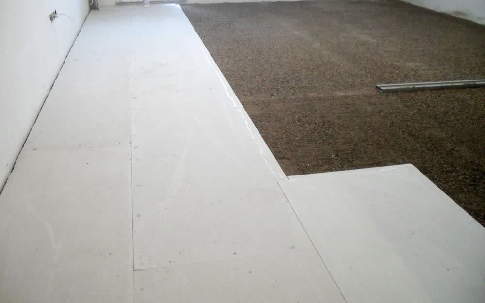 - Не допустимо применение крупнозернистого керамзита. Он значительно сокращает площадь соприкосновения с верхним листовым материалом, что в свою очередь может привести к продавливанию и деформации гипсоволокнистых листов.