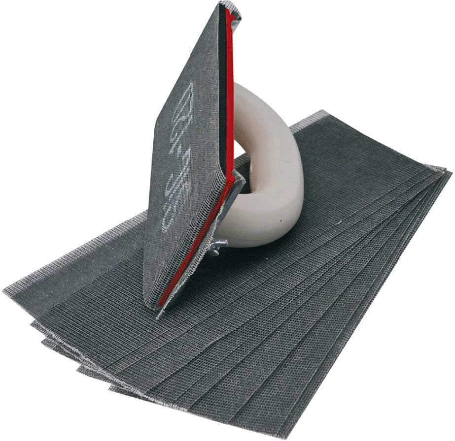 Затирочные сетки продаются нарезанные кусками — как раз под шлифовальный брусок. Другое дело, что сами бруски бывают самых разных размеров, поэтому при покупке сетки нужно подобрать изделие, подходящее под брусок. Недостатком сетки является ее цена, которая выше, чем на наждачную бумагу.