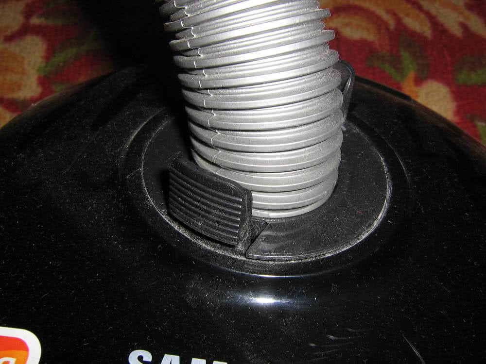 На закупорку шланга иногда указывает сильный гул, который издает работающий пылесос. Для прочистки этого компонента потребуется длинная металлическая проволока, посредством которой нужно удалить скопившуюся грязь.