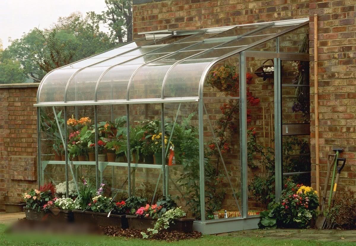 Практичное решение – делать парник, используя в качестве одной из стенок несущую конструкцию жилого строения. Такой вариант особенно актуален, если после строительства дома остались материалы. Каркас теплицы и цоколь делают из деревянного бруса или/и кирпича, а в качестве стенок используют поликарбонат или пленку.