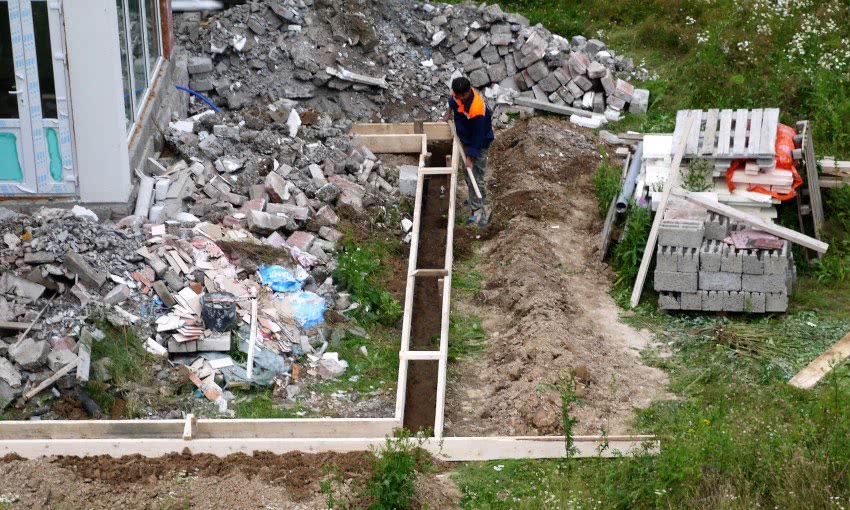 - Рытье траншеи по всему периметру будущего строения согласно предварительно выполненной разметке.