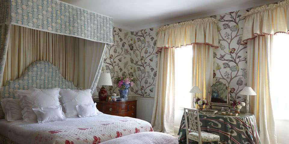 Спальня олицетворяет мир и спокойствие. Яркость и насыщенность интерьера часто неуместны. Вы можете выбирать шторы под обои радикально другого цвета, но интуитивно. Например, темно-серые обои будут выглядеть шикарно в дуэте с кораллово-красными занавесками, а насыщенно-желтые стены легко компенсируются белыми шторами.