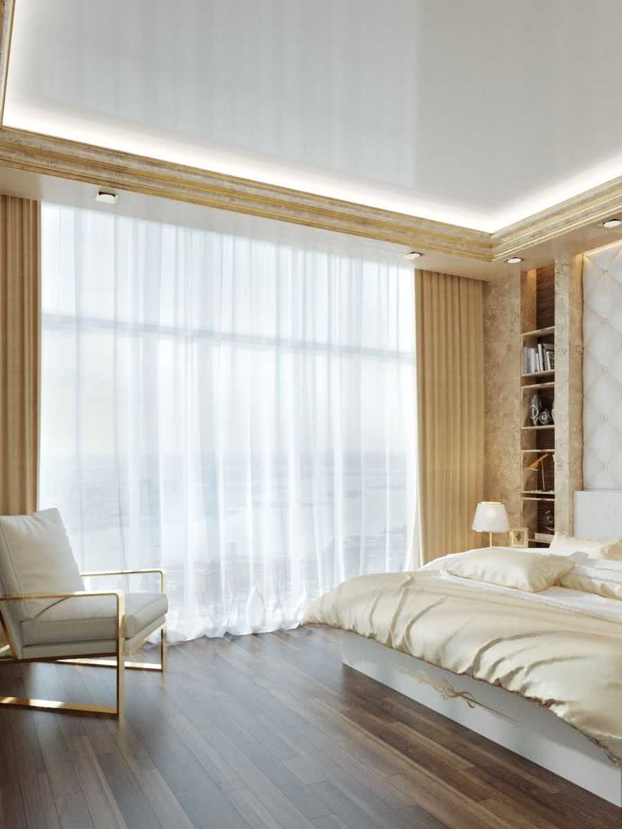 Белые шторы. Будут уместны в любом формате спальни. Они подойдут как к классическому стилю, так и к стилю хай-тек. Лучше всего, если они будут выполнены из легких струящихся тканей, а вот тяжелые материалы для этого будут менее уместны. Белые шторы прекрасно сочетаются с нюдовыми тонами стен или, наоборот, с яркими и сочными расцветками.