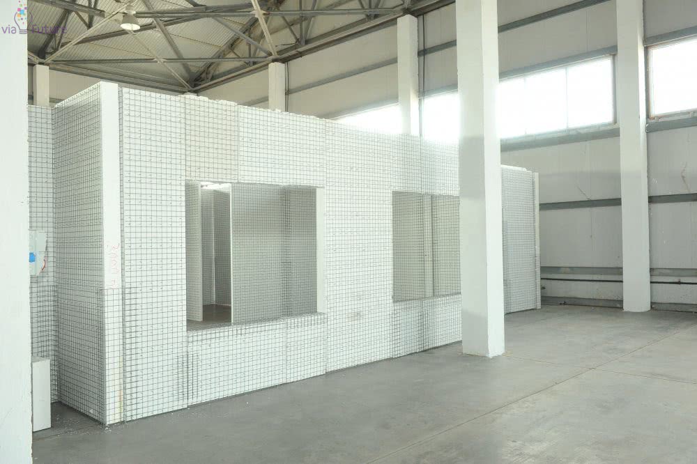 - Стены собираются из пустотелых бетонных блоков. Они изготавливаются непосредственно при возведении кладки с помощью переносной опалубки.