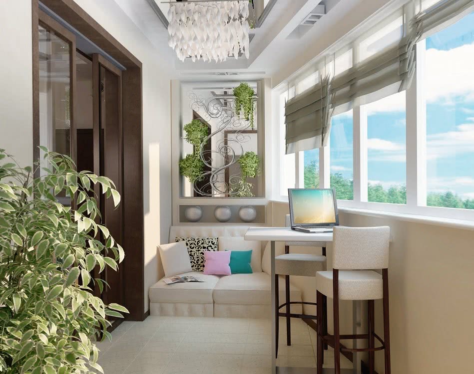 Только после их установки можно завершать отделочные работы, продумать компактную мебель для лоджии и другую обстановку.