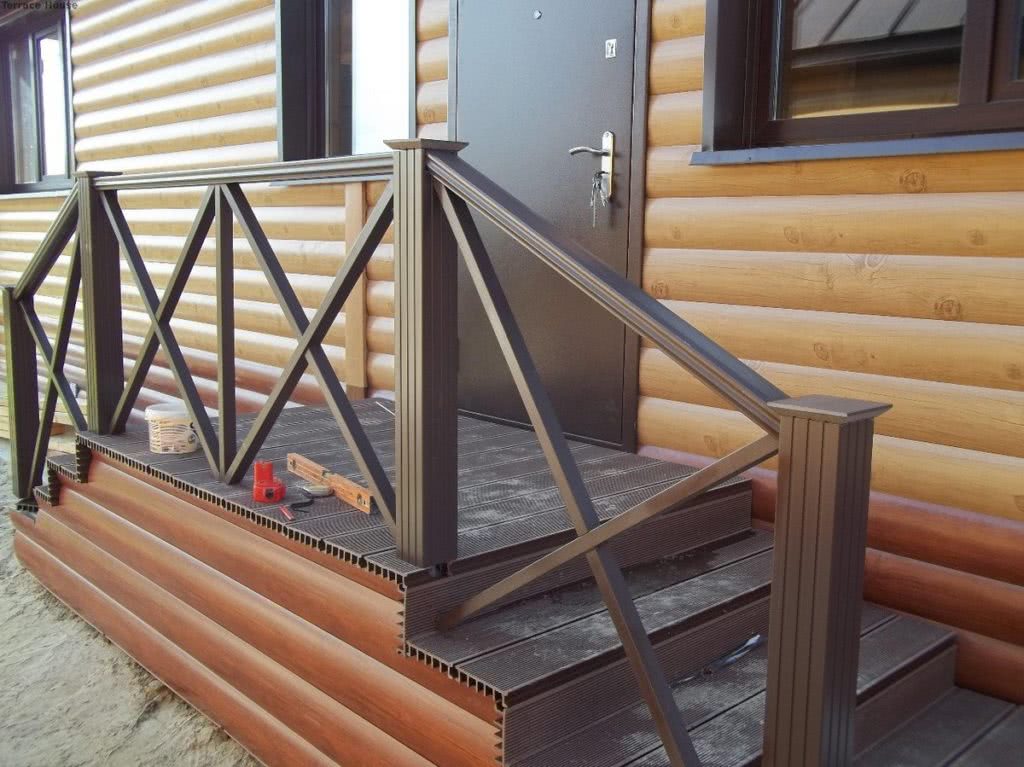 В большинстве случаев для металлического крыльца используют деревянные ступени.