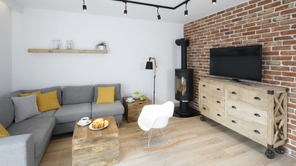 Идеи дизайна с использованием этого материала показывают, что залогом успеха является правильный выбор кирпича и его цвета, а в некоторых случаях также размещение его только на небольшой части стены. Если вы хотите выбрать кирпич в небольшую гостиную, следует также помнить о соответствующем освещении гостиной, которое подчеркнет облицовочный материал и придаст помещению уютную атмосферу.