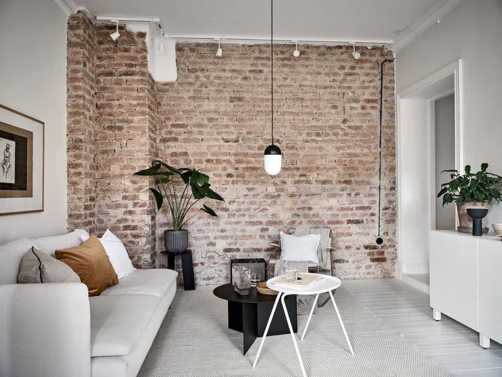 Кирпич в интерьере гостиной: создание неординарных эффектов