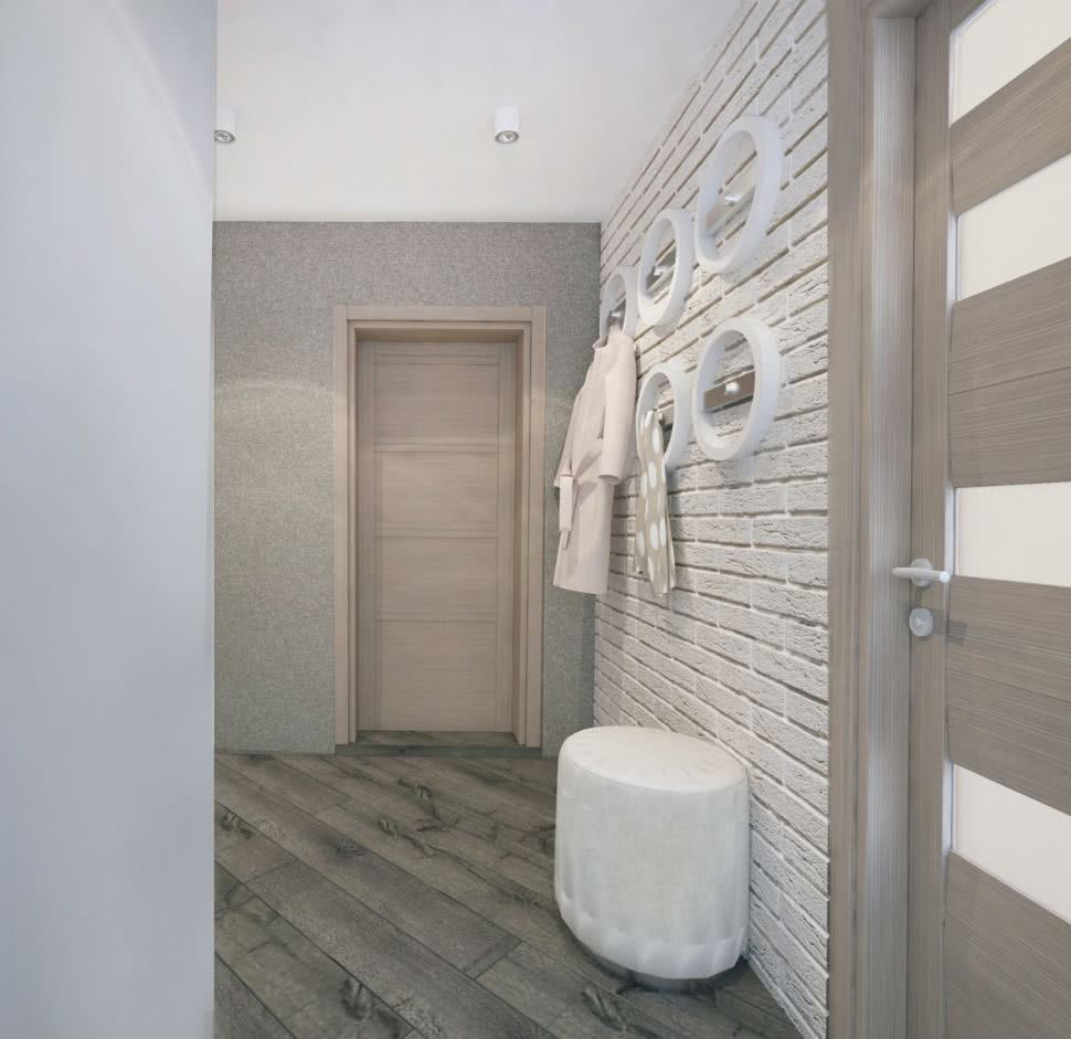 Текстура под белый кирпич подойдет для маленьких узких прихожих. Основной цвет визуально расширяет площадь, а линейность — усложняет дизайн. Рекомендуется для такого фона подбирать мебель светлых оттенков, чтобы усилить желаемый эффект.