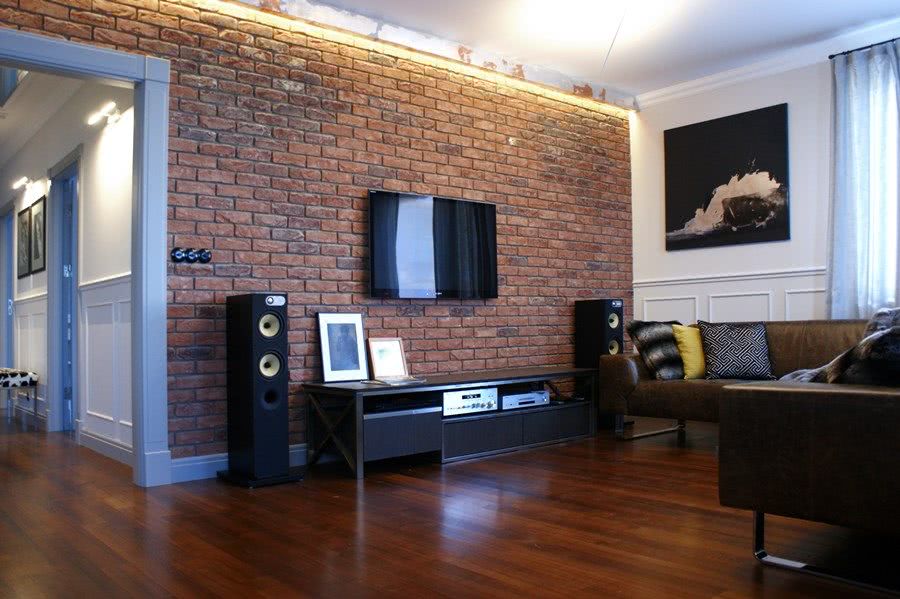 В старых домах и квартирах возможно отображение оригинального кирпича, использованного при строительстве дома. Старый кирпич в гостиной может появиться, например, при ремонте квартиры или переделке мансарды. Если вы хотите использовать его в декоративных целях, вы должны тщательно очистить кирпич, а затем пропитать его специальным препаратом.