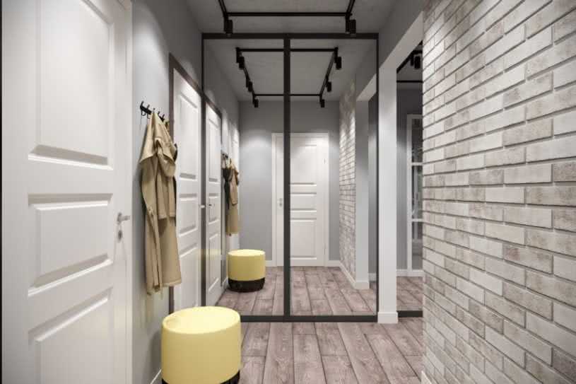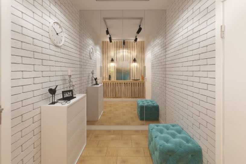 Лофт – имитация кирпичной кладки превратит коридор в настоящую мастерскую с нетронутыми стенами. Лучше всего для такой отделки подходят виниловые покрытия. Смотрите на фото.