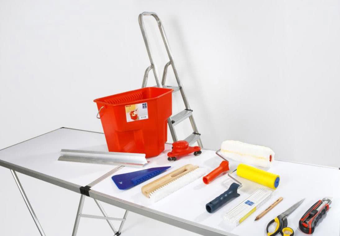 До того, как поклеить обои на гипсокартонную стену, необходимо подготовить инструменты для работы.