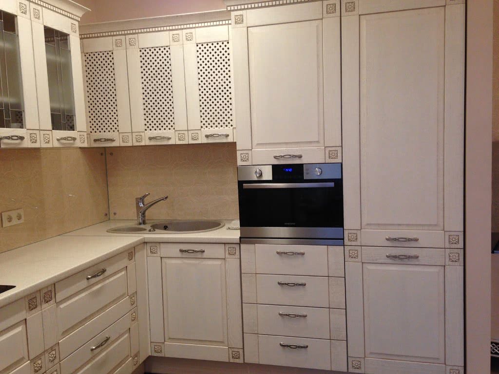 Немаловажная роль отведена орнаментам, резьбе. Для стиля модерн белой кухни характерным является использование четких, прямых линий фасадов, полученных из матового, обработанного лаком или ламинированного МДФ.