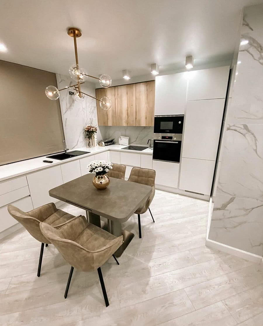 На самом деле кухня в таком цвете может быть разной — элегантной, теплой, уютной, стильной, роскошной, но никак не скучной или бесцветной. Главное, подобрать правильные оттенки.