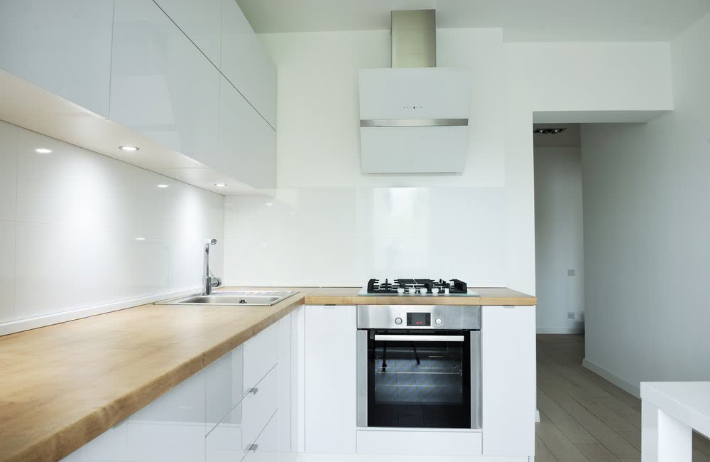 Сразу в начале приготовления блюд включайте вытяжку. Так, можно отфильтровать мельчайшие частицы, оседающие на белой кухне.