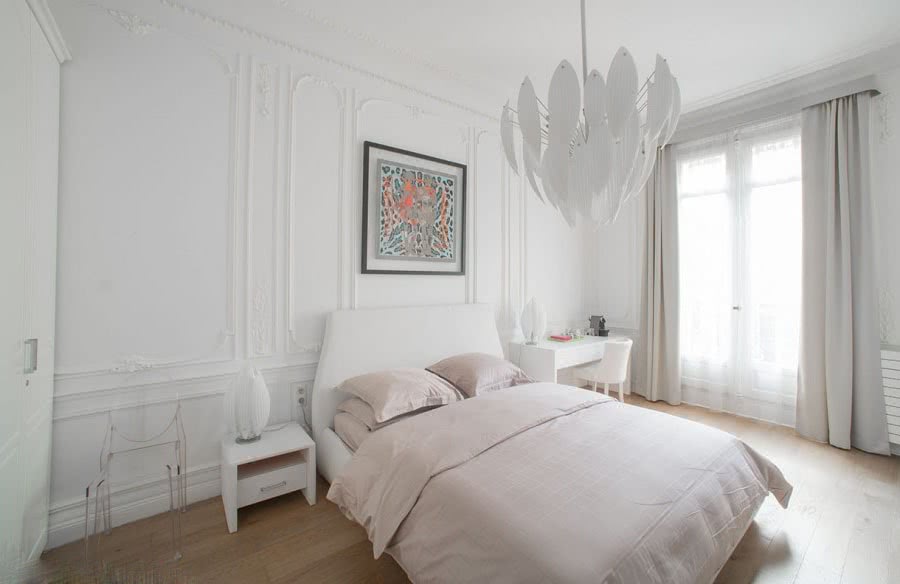 С пастельными оттенками преобладает мягкость и безмятежность, что может быть разумнее в вашем ночном пространстве? Все равно не забудьте расположить эти цвета с легкостью, несколько подушек, постельное белье, картины или предметы декора, этого в значительной степени достаточно. Если ваша белая спальня покрыта паркетом, вы получите очень теплое и уютное место. Порошкообразный розовый, бледно-голубой или зеленый-самые модные пастельные оттенки на данный момент.