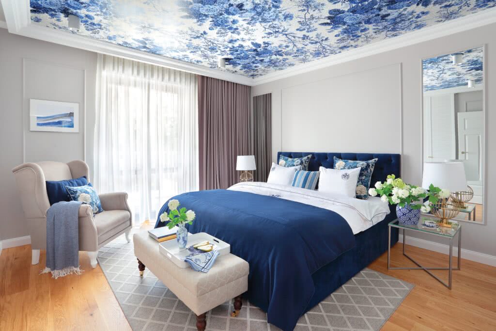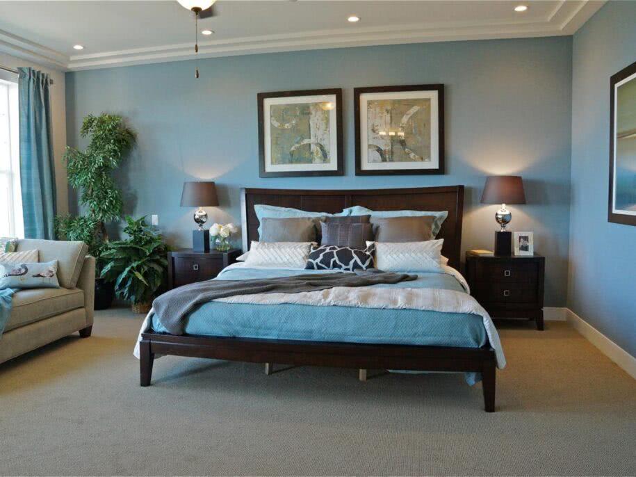 К сочетанию синего и белого идеально подойдет любой коричневый или бежевый. И если вы мечтаете о спальне в стиле гламур в бело-голубых тонах — тоже получится. Поэтому трудно не заметить, что синий — один из самых универсальных вариантов цвета для спальни.